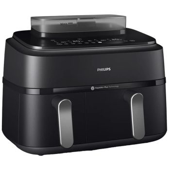 دارای دو طبقه هر کدام ظرفیت ۶لیتر دارای سبد طوری داخل محفظه سرخکن گالوانیزه منو رنگی لمسی با ۱۰برنامه پخت پیش فرض امکان پخت همزمان و مجزا دارای امکان تنظیم دستی دما و تایم دارای چراغ داخل محفظه سرخکن برای دیدن غذا حین پخت ۲۸۰۰ وات بدنه ضد خش مشکی