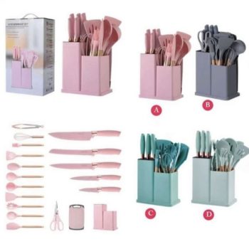 ست کفگیر ملاقه سیلیکونی و چاقوی آشپزخانه
