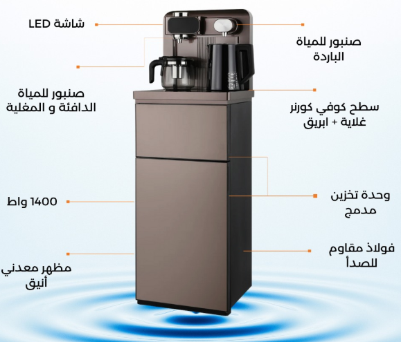این دستگاه مجهز به یک المنت گرمایشی ۱۴۰۰ واتی بسیار کارآمد است که آب گرم فوری را فراهم میکند. یک کتری استیل ضد زنگ با کیفیت غذایی، نوشیدن ایمن را تضمین میکند و یک صفحه نمایش LED به شما امکان میدهد دمای آب را در زمان واقعی کنترل کنید و آن را با نیازهای خود تنظیم کنید.