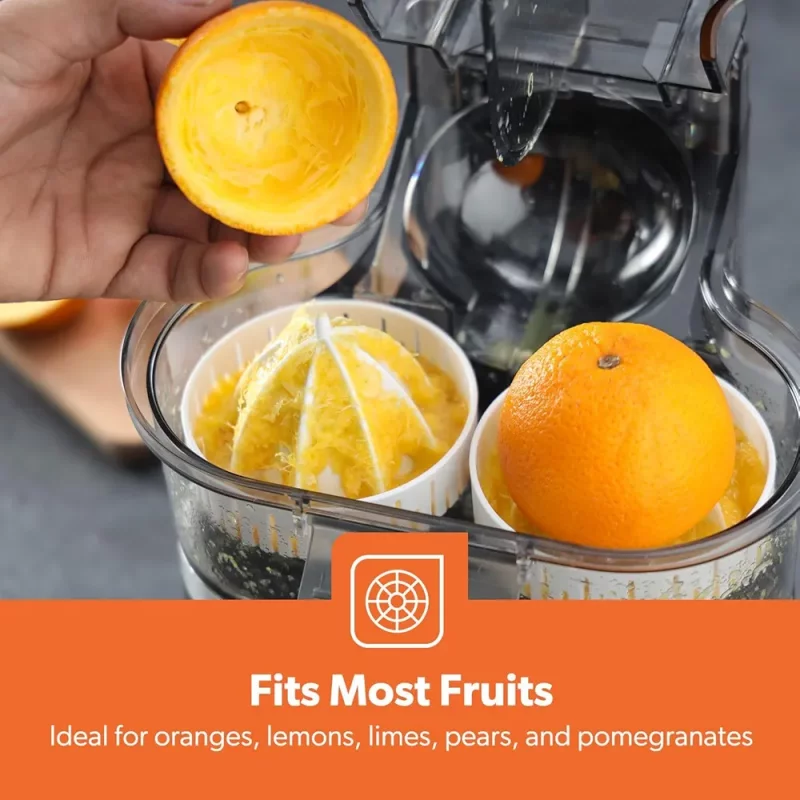 مخروطهای دو سایز و بدون تفاله – آبمیوهگیری برقی مرکبات دارای دو مخروط است، مخروط بزرگ برای میوههای بزرگتر مانند پرتقال و گریپ فروت مناسب است. مخروط کوچک برای لیموترش و لیموترش مناسب است. یک سیستم فیلتراسیون کارآمد، تمام هستهها و تفالهها را از بین میبرد تا آبمیوه کاملاً نرم و مغذی داشته باشید.