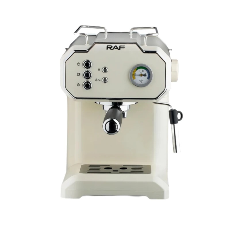 اسپرسو ساز راف مدل R.104، با طراحی بسیار زیبا و کاربردی، می تواند یکی از بهترین گزینه های شما در انتخاب دستگاه اسپرسوساز باشد. این دستگاه با فشار ۲۰ بار و قدرت ۸۵۰ وات، توانایی تهیه اسپرسو با کیفیت بالا و عصاره گیری را دارد. این دستگاه مجهز به پیچ تنظیم بخار میباشد که امکان تهیه فوم شیر با غلظت های متفاوت را با تنظیم بخار خروجی فراهم می آورد.