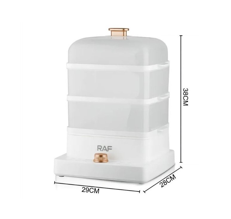 ظرفیت: بخارپز دارای طراحی سه طبقه است که هر طبقه ۴ لیتر ظرفیت دارد و امکان بخارپز کردن چندین ماده غذایی را به طور همزمان و بدون مخلوط شدن طعمها فراهم میکند.