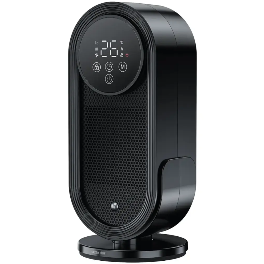 فن هیتر رومیزی گرین لاین Green Lion Heater Lite با کنترل از راه دور – مشکی رنگ، دستگاهی است که هم به عنوان هیتر و هم به عنوان فن عمل می کند.