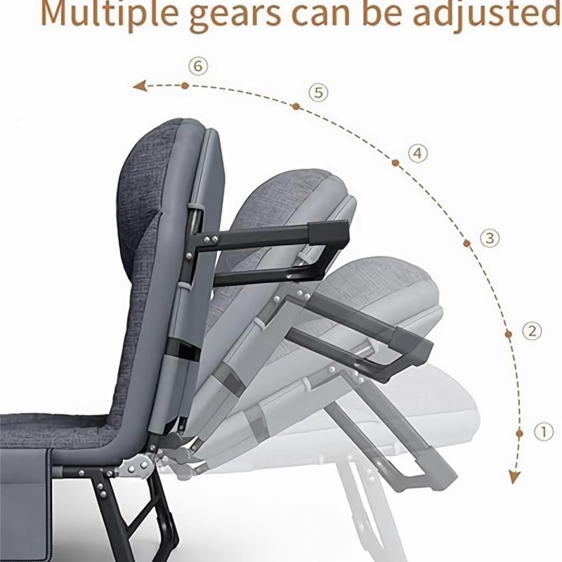تخت خواب تاشو ۶ حالته این تخت خواب قابل حمل مجهز به سیستم قفل مثلثی است که به شما امکان میدهد پشتی تخت را در ۶ حالت مختلف قفل کنید، میتوانید آن را دراز بکشید یا بخوابید. زاویه را میتوان در حالی که روی تخت دراز کشیدهاید بدون اینکه از آن خارج شوید، تنظیم کرد. زوایای تنظیم مختلف برای سناریوهای مختلف استفاده و گروههای مختلف افراد مناسب است.