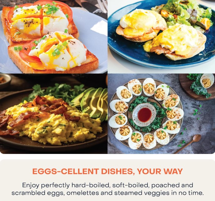 یک دستگاه جمعوجور و سریع برای پخت انواع تخممرغ با سه حالت پخت مختلف است. با توان مصرفی ۳۶۰ وات، این دستگاه قادر است تا ۷ عدد تخممرغ را در کمترین زمان ممکن به شکلی عالی و با کیفیت آبپز، نیمرو یا املت آماده کند. این دستگاه مخصوصاً برای افرادی که به سرعت نیاز به تخممرغ پخته یا انواع املت دارند، گزینهای مناسب و کارآمد است.