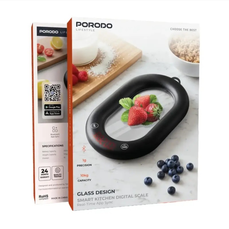 ترازوی آشپزخانه دیجیتال هوشمند Puro-Doo با طراحی شیشه‌ای و قابلیت همگام‌سازی همزمان با برنامه – به رنگ مشکی – ترکیبی بی‌نظیر از دقت، راحتی و سبکی بی‌نظیر برای آشپزخانه شماست. این ترازو دقت ۱ گرمی را ارائه می‌دهد که واقعاً قابل توجه است و تضمین می‌کند که چه در حال پخت و پز، چه در حال پخت و پز یا صرفاً وعده‌های غذایی، همیشه اندازه‌گیری‌های صحیح را انجام دهید. پلتفرم شیشه‌ای سکوریت، ترازو را بادوام و از نظر زیبایی‌شناسی دلپذیر می‌کند، در حالی که باتری قابل شارژ آن امکان استفاده طولانی مدت را بدون نیاز به تعویض مکرر فراهم می‌کند. همگام‌سازی با برنامه از طریق بلوتوث به شما این امکان را می‌دهد که به راحتی اندازه‌گیری‌های خود را کنترل کنید و مستقیماً از طریق تلفن هوشمند خود دستور پخت ایجاد کنید و تهیه غذاهای عالی را به کاری آسان تبدیل کنید. ویژگی صفر کردن با یک لمس به شما امکان می‌دهد ترازو را به سرعت برای چندین ماده تنظیم مجدد کنید و سرعت کار خود را در آشپزخانه افزایش دهید. همچنین ضد آب (IPX5) است و به راحتی ضدعفونی می‌شود، بنابراین این ترازو می‌تواند در برابر نیازهای یک آشپزخانه شلوغ مقاومت کند. ترازوی آشپزخانه هوشمند Puro-Doo همه کاره است و می‌تواند به راحتی بین گرم، میلی‌لیتر، اونس و برعکس تبدیل کند.