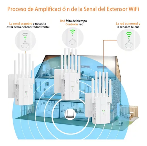 تقویتکننده سیگنال وایفای قدرتمند، توسعهدهنده برد جهانی، توسعهدهنده برد بیسیم با WPS، توسعهدهنده برد وایفای، ۶ آنتن، تقویتکننده سیگنال قوی، پوشش بالای ۳۰۰ مگابیت بر ثانیه، تکرارکننده بیسیم ۲.۴ گیگاهرتز