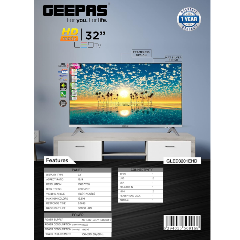 تلویزیون ال ای دی ۳۲ اینچ جیپاس مدل GLED3201EHD