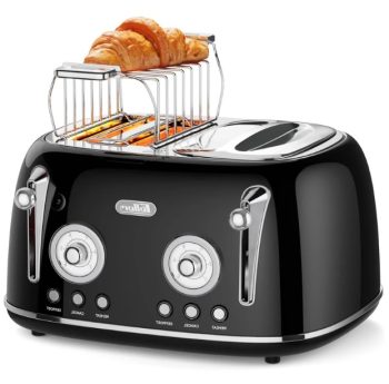 شکاف های عریض: توستر ۴ تکه ما دارای شکاف های بسیار پهنی است که برای قرار دادن نان برش شده استاندارد، نان شیرینی ضخیم، وافل، کلوچه انگلیسی و موارد دیگر طراحی شده است. ایده آل برای سرو انواع صبحانه برشته شده برای کل خانواده.