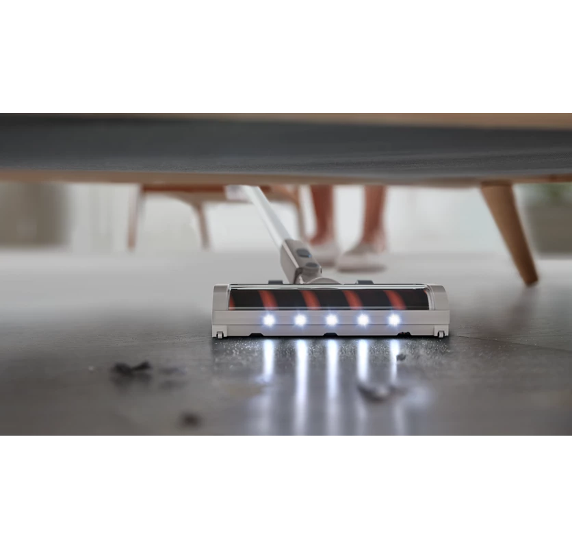 نازل منحصربهفرد آن، نازل LED مخصوص کف سخت است که با تاباندن نور با زاویه دقیق، ریزترین ذرات گرد و غبار پنهان را آشکار میسازد تا هیچ نقطهای از قلم نیفتد و تا 99% آلودگیها را جمعآوری کند. با باتری قابل تعویض، میتوانید تا 40 دقیقه در حالت Eco به نظافت بپردازید. این جاروشارژی با قابلیت تبدیل به جاروی دستی فوقالعاده سبک (کمتر از 1.3 کیلوگرم) و پایه دیواری برای شارژ و نگهداری آسان، گزینهای عالی برای تمیزکاریهای روزمره است.