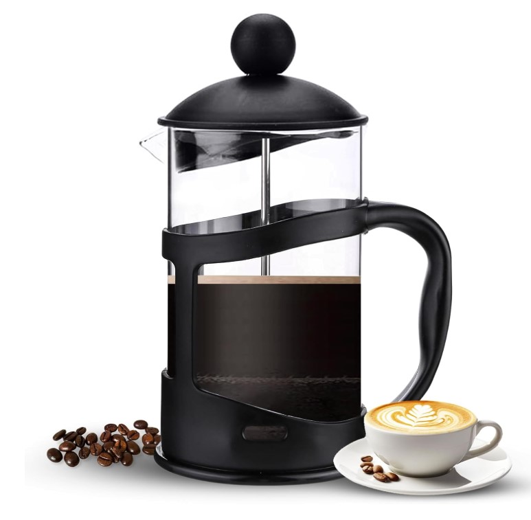 به آرامی شفت مرکزی را به پایین فشار دهید تا فیلتر به آرامی به کف بشر شیشهای برسد. به یاد داشته باشید که آب در دمای جوش است و باید مراقب باشید که خیلی سری به پایین فشار ندهید.