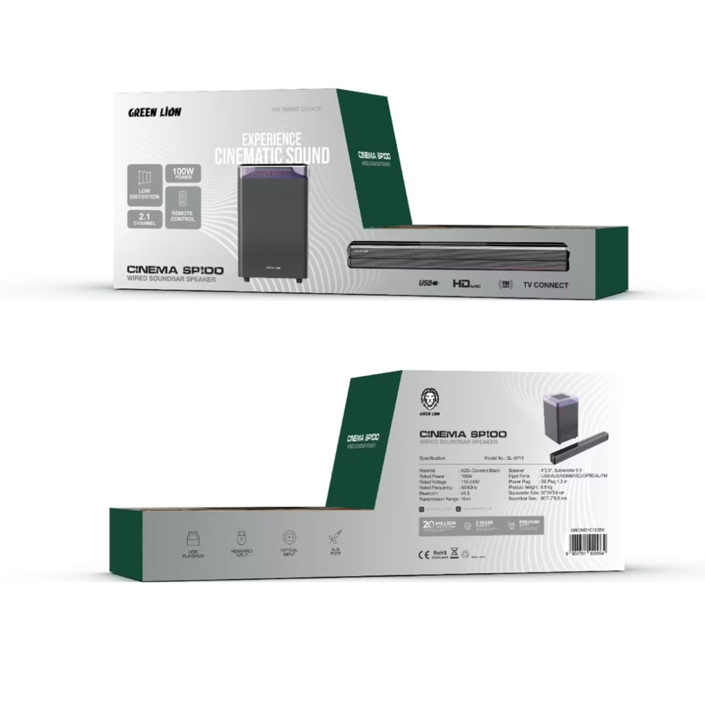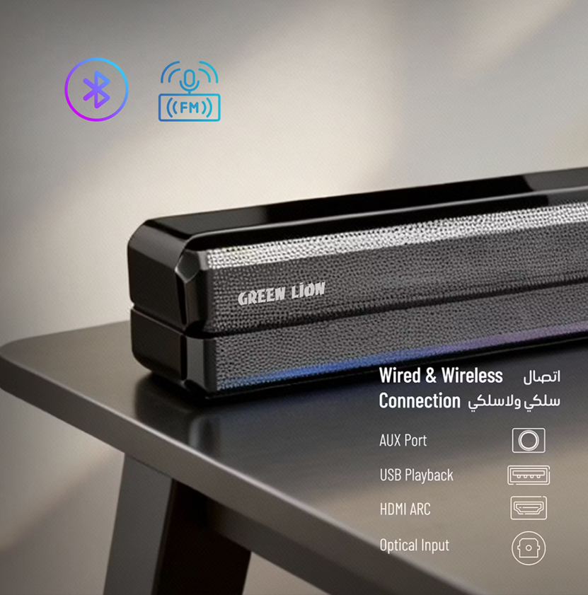 بلندگوی سیمی ساندبار Green Lion Cinema SP100 با خروجی قدرتمند ۱۰۰ وات، ارتقاء صوتی ایدهآلی برای سیستم سرگرمی خانگی شماست. این بلندگو دارای طراحی شیک، تنظیمات ۲.۱ کاناله برای صدای فراگیر و یک ساب ووفر قدرتمند است. Cinema SP100 دارای چندین گزینه ورودی است: USB، HDMI (ARC)، AUX و اپتیکال. این امر اتصال همه دستگاههای شما را آسان میکند. میتوانید هنگام تماشای تلویزیون، گوش دادن به موسیقی یا بازی کردن، از صدای واضح با اعوجاج کم لذت ببرید. بلوتوث ۵.۰ آن به شما امکان میدهد موسیقی را به صورت بیسیم از تلفن یا تبلت خود پخش کنید. همچنین یک ریموت دستی برای تنظیمات آسان صدا و کنترل صدا دریافت میکنید. ظاهر مدرن آن کاملاً با دکوراسیون مدرن هماهنگ میشود و اندازه کوچک آن در هر چیدمانی جا میشود. برای کیفیت صدای عالی، Green Lion Cinema SP100 بلندگوی بینظیری است. این بلندگو برای سرگرمی یا لذت بردن از موسیقی در خانه ایدهآل است.