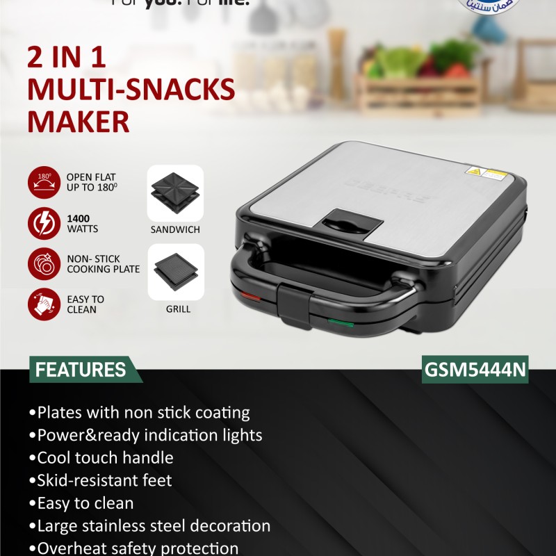 ساندویچ ساز ۲ کاره جیپاس مدل GSM5444 با طراحی زیبا وعملکردهای ویژه یکی از بهترین ساندویج سازهاست