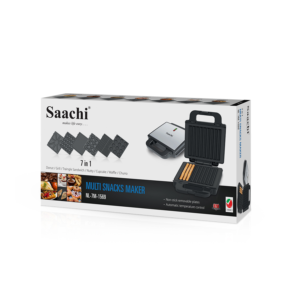 اسنک ساز ساچی ۷ در ۱ یک مکمل عالی برای لوازم خانگی شماست. چه در حال پذیرایی از مهمانان، پذیرایی از کودکان یا صرفاً به دنبال تهیه تنقلات برای شب سینما هستید، این وسیله برای شما مناسب است. بشقاب های جداشدنی نچسب به شما این امکان را می دهد که دونات، گریل، ساندویچ مثلثی، آجیل، کیک کوچک، وافل، چورو درست کنید تا تمام هوس های خود را برآورده کنید.