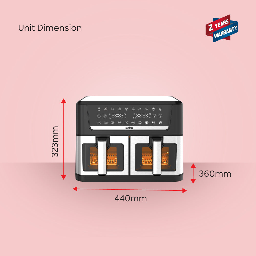 این دستگاه قدرتمند ۲۸۰۰ وات، سرخ کردن در هوا، برشته کردن، گرم کردن مجدد و خشک کردن را در یک واحد شیک و استیل ضد زنگ ترکیب میکند.