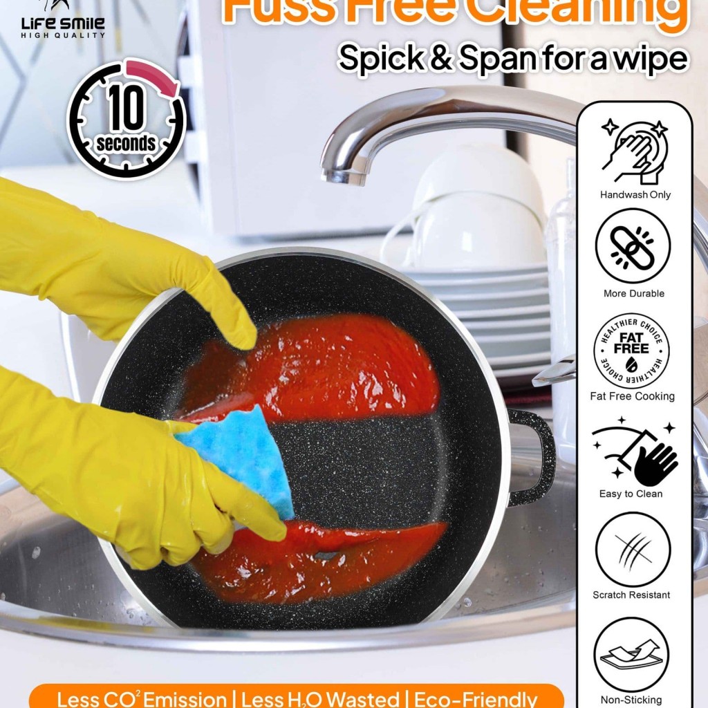سرویس پخت و پز نچسب: قابلمههای ما دارای پوشش نچسب گرانیتی هستند که تمیز کردن را آسان میکند.