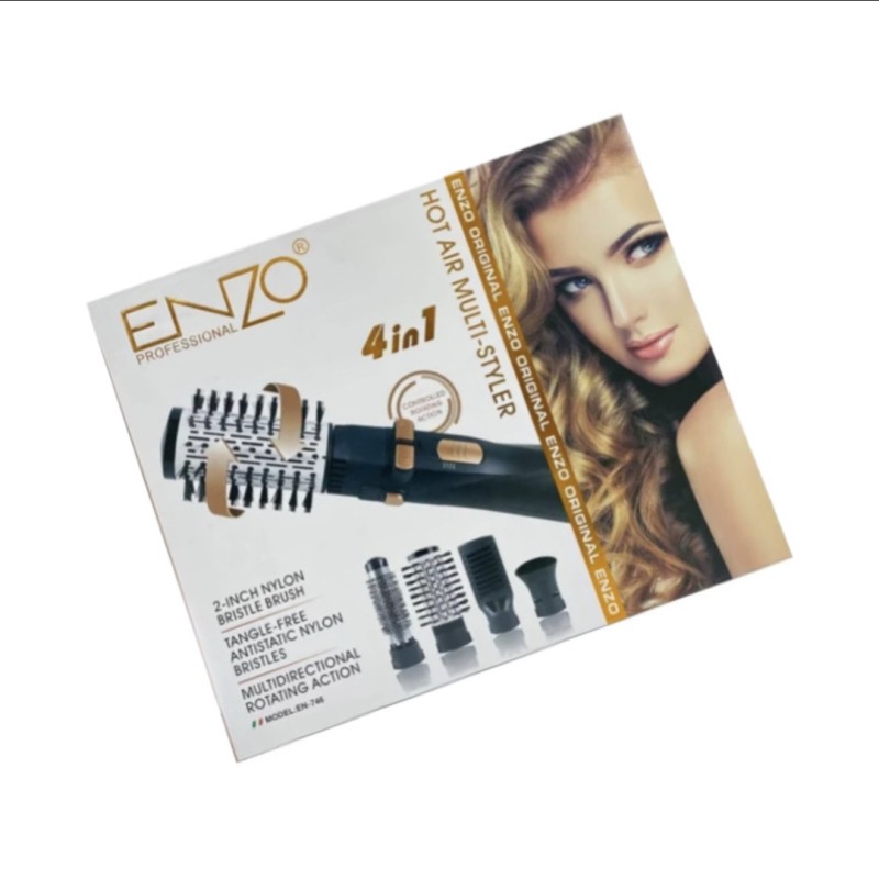 سشوار چرخشی ۴ کاره اورجینال ENZO مدل EN-746 دارای طراحی شیک و ارگونومیک می باشد. این محصول با کیفیت دارای بدنه محکم و مقاوم در ترکیب رنگ مشکی و طلایی در بازار موجود می باشد. از این محصول برای حالت دادن و خشک کردن موهای سر بانوان استفاده می شود. صفحات چرخشی آن از جنس سرامیک می باشند که توانایی چرخش به سمت چپ و راست را دارند. همچنین دارای سیم بلند و چرخشی ۳۶۰ درجه می باشد که هنگام کار مانور بیشتری به دست شما می دهد. منبع تغذیه این سشوار برق مستقیم می باشد.از دیگر ویژگی های این محصول می توان به قابلیت تولید باد سرد و گرم و داغ آن اشاره نمود. به علاوه مخصوص براشینگ، خشک کردن و استایل دادن موها می باشد. همچنین مجهز به تکنولوژی تولید یون منفی جهت حفظ رطوبت مو ها در بلند مدت می باشد. موتور دستگاه از نوع سنگین و بسیار قدرتمند وقدرت آن ۱۲۰۰ وات است. از این محصول حرفه ای و با کیفیت عالی می توان در منزل و سالن های آرایشی استفاده نمود.