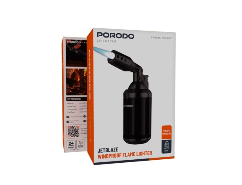 فندک ضد باد Porodo Lifestyle Jetblaze جایی است که زیبایی با کاربردی بودن در یک رنگ مشکی کلاسیک ترکیب میشود. قدرت شعله توربو آن را قادر میسازد تا شعلهای تا ۱۳۵۰ درجه سانتیگراد (۲۵۰۰ درجه فارنهایت) پرتاب کند، به این معنی که در فضای باز، به ویژه در شرایط طوفانی، بسیار مناسب است.
