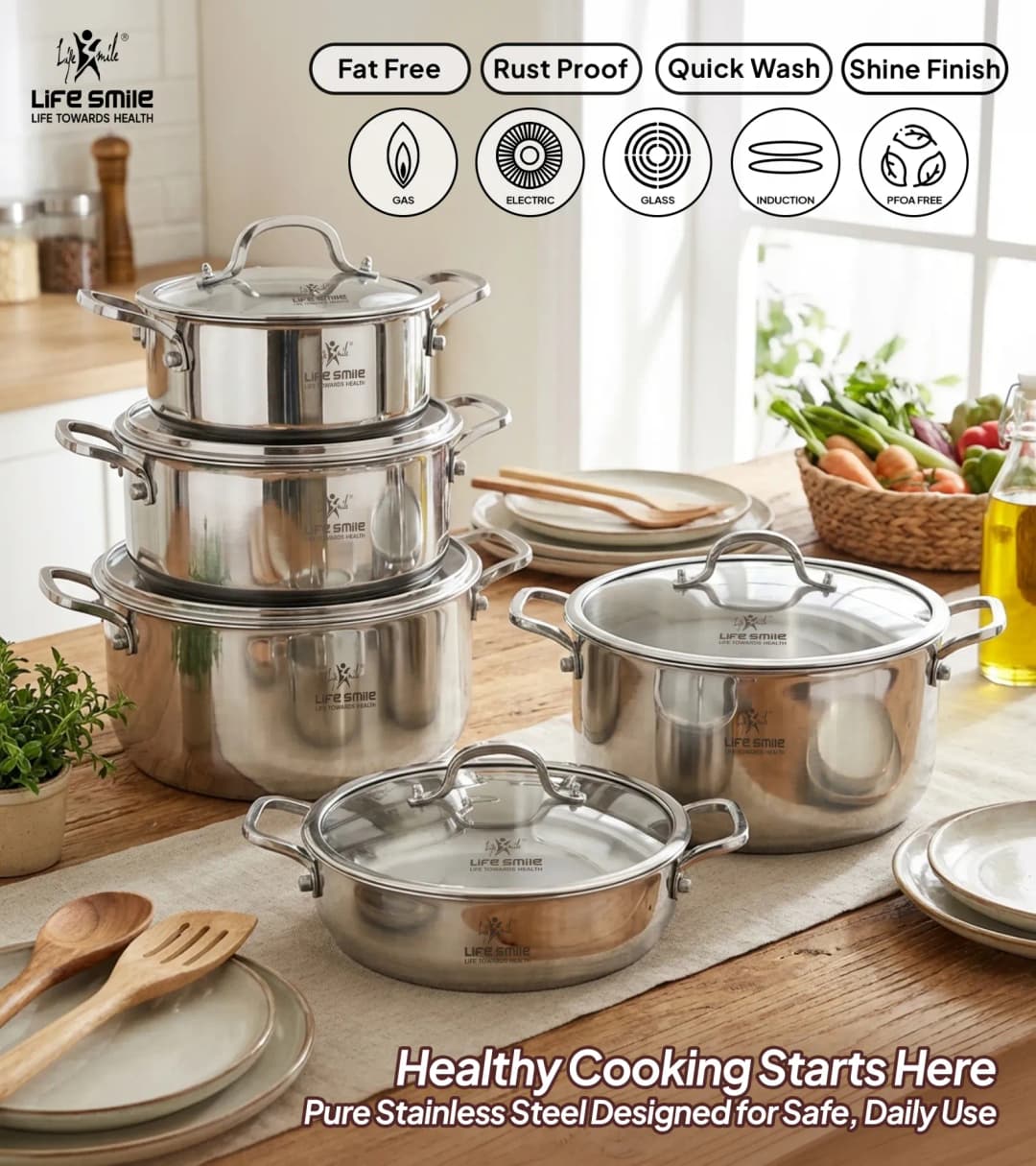 قابلمه ۱۰پارچه استیل لایف اسمایل مدل LIFEP34-10-2