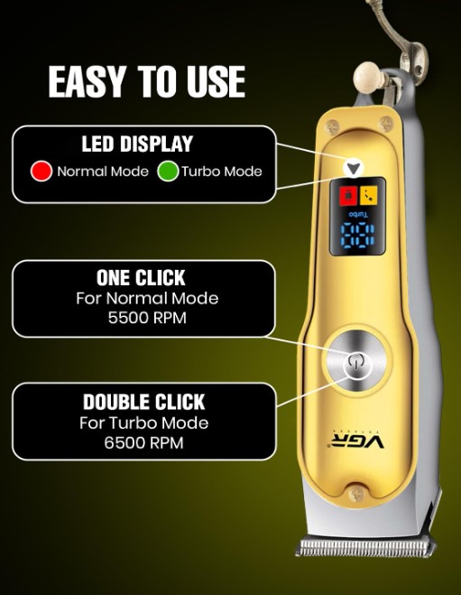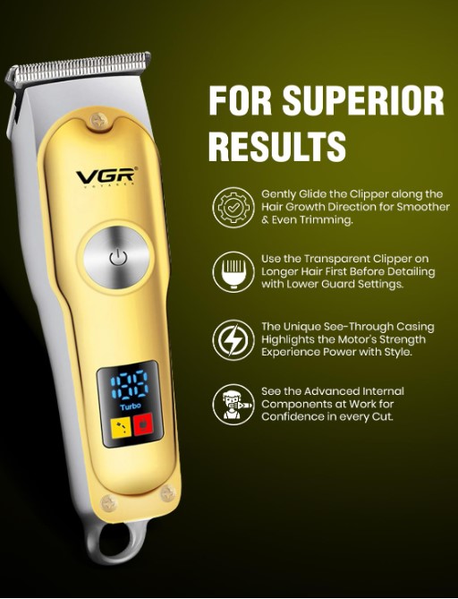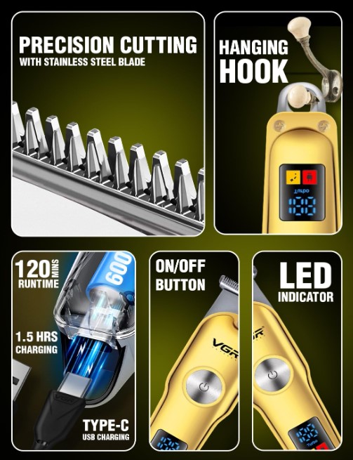 ماشین اصلاح موی سر و صورت وی جی ار مدل V-290، ترکیبی از طراحی مدرن و عملکرد حرفهای است که تجربهای بینظیر از اصلاح را برای کاربران فراهم میکند. این دستگاه با تیغههای T شکل از جنس استیل ضد زنگ، امکان اصلاح دقیق و بدون آسیب به پوست را فراهم میسازد. باتری لیتیومی قدرتمند آن با ظرفیت ۶۰۰ میلیآمپر، با شارژ کامل در ۹۰ دقیقه، تا ۱۲۰ دقیقه استفاده مداوم را فراهم میکند. نمایشگر دیجیتال LED نیز اطلاعاتی مانند میزان شارژ و نیاز به روغنکاری را به کاربر نمایش میدهد.
