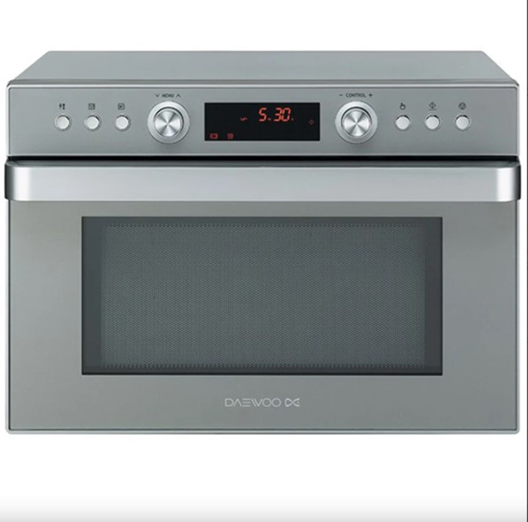مارک DAEWOO DE در قسمت پایین درج شده است که از دور کیفیت محصول را بیان می کند. صفحه نمایش روی فر KOC-1C4K طراحی این دستگاه را بسیار زیبا کرده است و اطلاعات مفیدی در اختیار کاربران قرار می دهد.