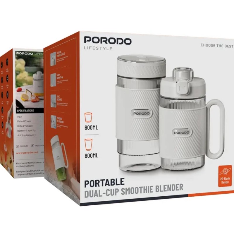 مخلوط کن و اسموتی ساز قابل حمل پرودو Porodo Lifestyle با دو فنجان