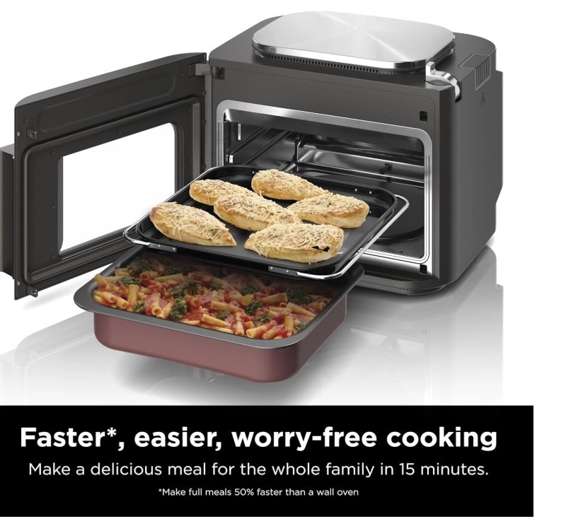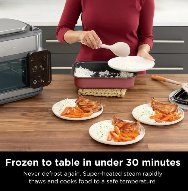 با این مولتی کوکر شگفت انگیز سرعت در آشپزی را تا ۵۰ درصد افزایش دهید. فر و مولتی کوکر ninja SFP700 با توان ۱۷۸۰ و فناوری های HyperSteam و Air Fry بدون دغدغه نتایج آشپزی سریع را ارائه می دهد و به سرعت در حدود ۱۵ دقیقه غذای لذیذی را که از بیرون ترد و از داخل بافت نرمی دارد مهیا می سازد. وجود سیستم یخ زدایی کمک می کند تا به کمک بخار بسیار داغ مواد منجمد را سریع ذوب کرده و در کمتر از ۳۰ دقیقه با دمای مناسب غذا را بپزید. با این ویژگی های جذاب می توانید هر غذایی را که دوست دارید بدون زحمت زیاد، در عرض چند دقیقه ۱۵ تا ۳۰ دقیقه آماده کرده و روی میز بچینید. از امکانات بی پایان مولتی کوکر نینجا SFP700 لذت ببرید.