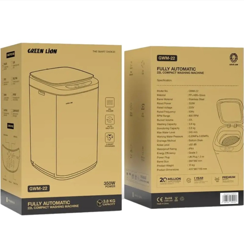 ماشین لباسشویی ۲۲ لیتری گرین لیون، جمع و جور اما قدرتمند است، ترکیبی بینظیر از فناوری مدرن و طراحی کاربردی که تجربه شستشوی آسان، دقیق، ایمن و قابل اطمینان را به کاربر ارائه میدهد.