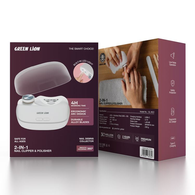 برق دستگاه از طریق USB-C برای راحتی شارژ می‌شود و دستگاه با محافظت ایمنی برای همه سنین ایمن است. چه در حال کوتاه کردن باشید و چه در حال پولیش، ناخن‌گیر و پولیش دوکاره گرین لیون، یک تجربه‌ی مراقبت ایمن و دلپذیر از ناخن را تضمین می‌کند.