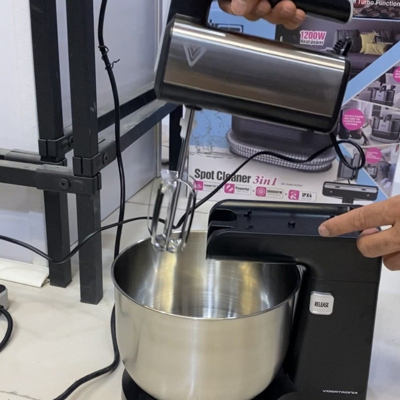 تصور کن خمیر کیک یا نون رو بریزی تو کاسه و خودش همه کار رو انجام بده، بدون اینکه دستت خسته بشه… این همزن ایستاده ووگاترونیکس با کاسه چرخان و قدرت حرفهایش، شیرینیپزی و آشپزی رو فوقالعاده راحت و لذتبخش میکنه!