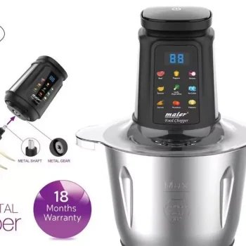 مایر مدل MR-1303 با طراحی مدرن، شیک و بدنهای مقاوم عرضه میشود که ترکیب رنگهای مات و استیل در آن جذابیت خاصی به آشپزخانه میدهد. کاسه استیل ضدزنگ این دستگاه علاوه بر زیبایی، دوام بالایی هم دارد و در برابر خط و خش و تغییر رنگ مقاوم است. ظرفیت ۵ لیتری کاسه باعث میشود بتوانید مقدار زیادی مواد را در یک نوبت هم بزنید، که این موضوع در مهمانیها یا خانوادههای پرجمعیت بسیار مفید است.