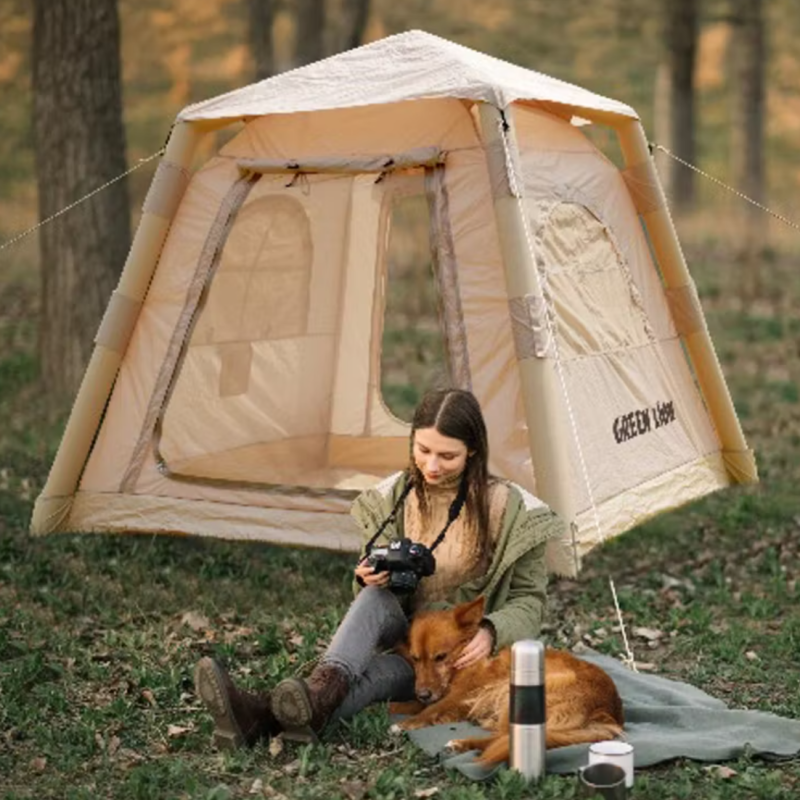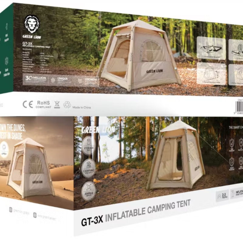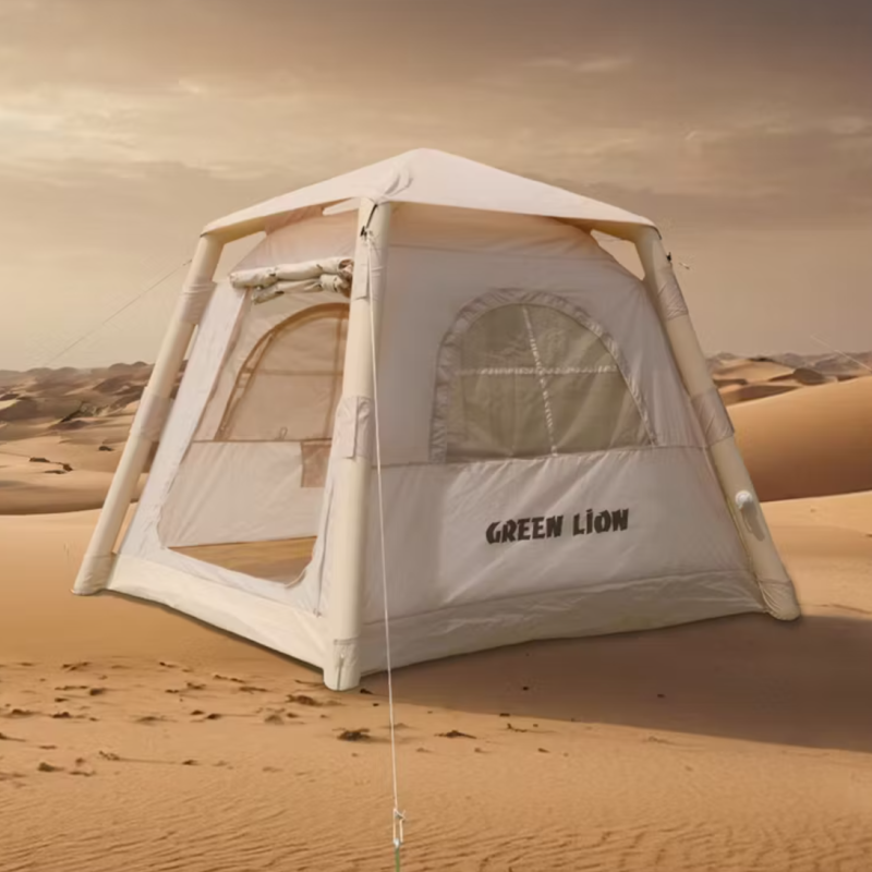 چادر مسافرتی بادی Green Lion GT-3X با ظرفیت ۲-۳ نفر، ضد آب، دارای دو درب، زمان باد شدن ۱-۲ دقیقه، توری تهویه دار، محافظ در برابر باد، مقاوم در برابر پارگی – بژ