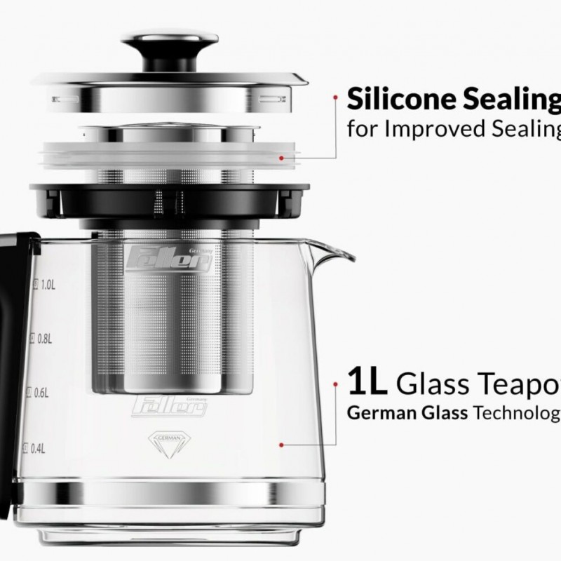 چای ساز فلر TS 490 دارای ظرفیت ۱.۷ لیتر برای کتری و ۱ لیتر برای قوری است که به کاربران اجازه میدهد تا در هر بار استفاده چای یا دمنوش زیادی تهیه کنند. این ظرفیت بالا به خصوص برای مهمانیها یا خانوادههای پرجمعیت بسیار کارآمد است و نیازی به جوشاندن مکرر آب نیست. توان ۲۲۰۰ وات این دستگاه، امکان به جوش آوردن سریع آب را فراهم میآورد، به طوری که شما میتوانید به سرعت به یک فنجان چای خوشمزه دست پیدا کنید.