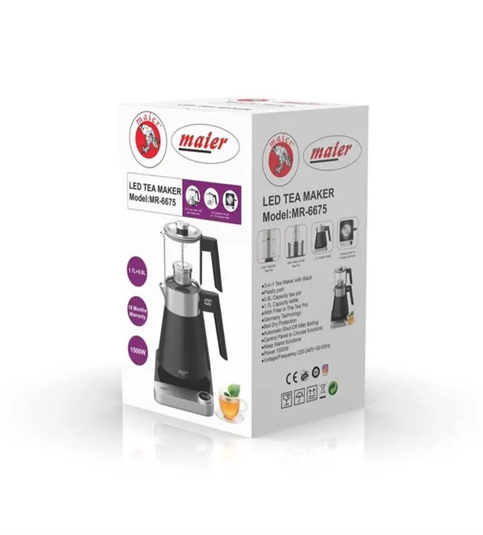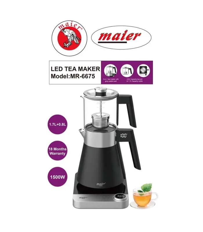 چای ساز مایر مدل MR-6675 یکی از جدیدترین و هوشمندترین محصولات برند معتبر مایر (Maier) است در سال ۲۰۲۵ که با طراحی مهندسیشده و قابلیتهای حرفهای، تجربهای متفاوت از تهیه چای و دمنوش را برای کاربران خود فراهم میسازد. برند مایر همواره با تمرکز بر کیفیت ساخت، زیبایی ظاهری و فناوریهای نوین در زمینه لوازم خانگی، محصولات کاربردی و جذابی را روانه بازار کرده که MR-6675 نیز از این قاعده مستثنا نیست. در ادامه این چایساز مدرن را از ابعاد مختلف بررسی میکنیم: