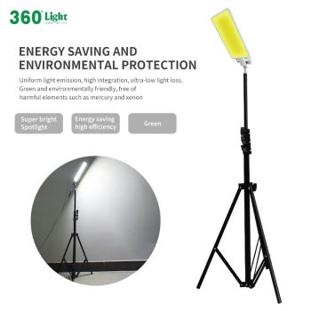 این محصول مجهز به چراغ COB با دو حالت نوردهی، پروژکتور جانبی چندحالته و پایهای برای ایستاده یا آویزان کردن است.