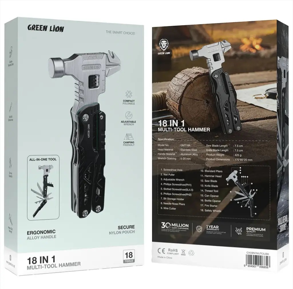 ابزار چندکاره ۱۸ کاره گرین لیون، ابزاری کاربردی است که ویژگیهای چکش، پیچگوشتی، آچار فرانسه و موارد دیگر را در یک بسته جمع و جور ترکیب میکند. این ابزار مستحکم برای تعمیرات روزمره و کارهای فوری ایدهآل است.