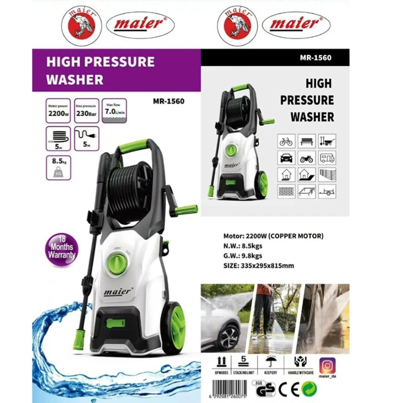 کارواش مایر MR-1560 دستگاهی قدرتمند و کارآمد برای شستوشوی خودرو، حیاط، تراس و سطوح مختلف است.