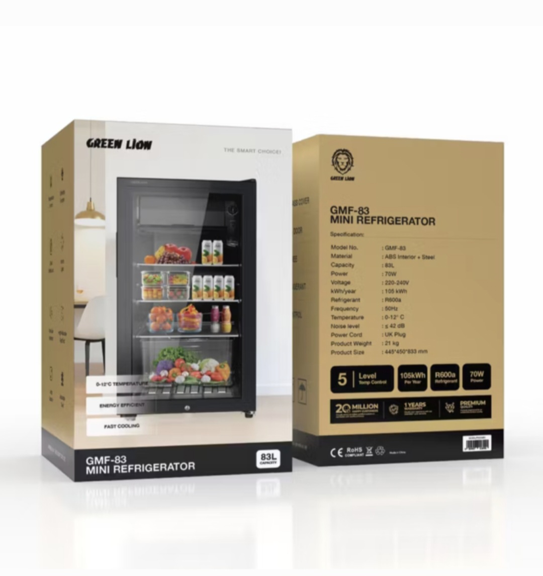 یخچال کوچک گرین لاین مدل GMF-83 با ظرفیت ۸۳ لیتر، توان ۷۰ وات، ۵ سطح دما، چراغهای داخلی، قابلیت یخزدایی، قفل کودک، جنس بدنه ABS و استیل، عملکرد فوقالعاده بیصدا